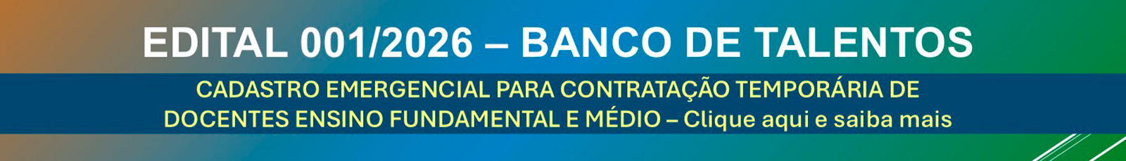 - EDITAL DE 26/12/2025 – BANCO DE TALENTOS AGENTE DE ORGANIZAÇÃO ESCOLAR – AOEI – DISPOSIÇÕES INICIAIS 1. A inscrição no Banco de Talentos tem …
